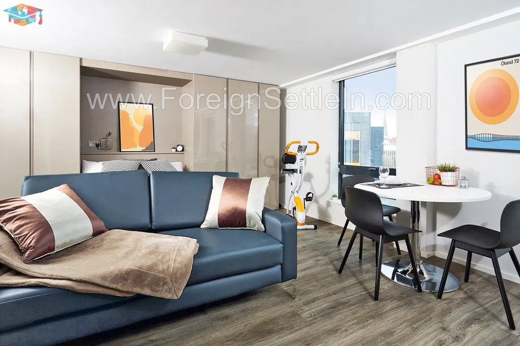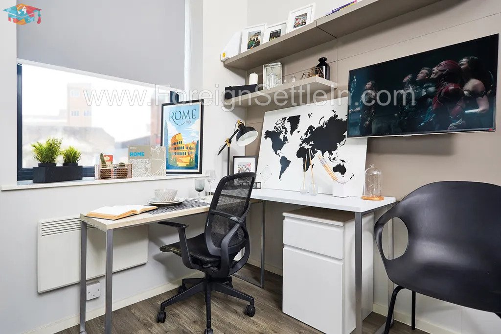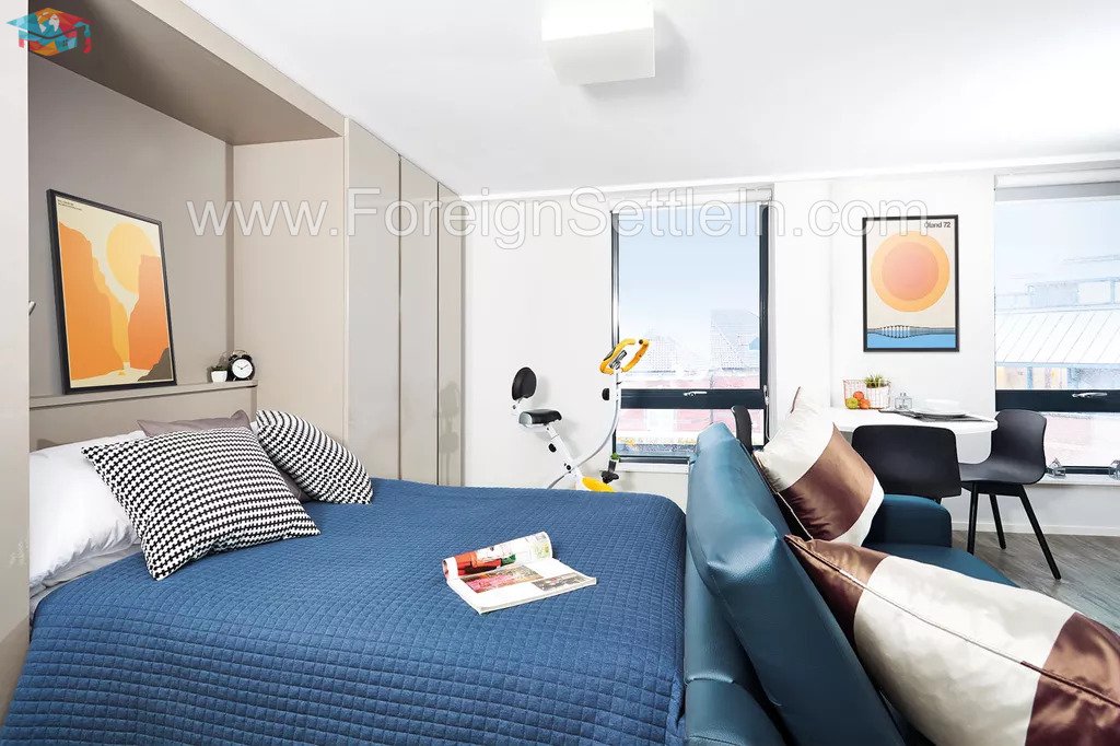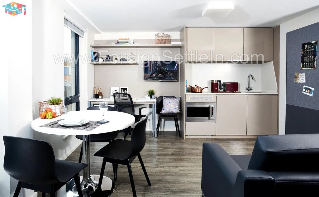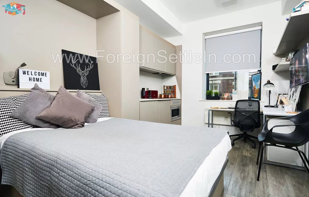 Every studio comes equipped with all the modern comforts, including a comfortable bed, a private bathroom, a closet, a desk for studying, a fitted kitchen, and lots of storage. Your stay will be safer and more secure thanks to amenities like free high-speed wifi, CCTV cameras, key fob access, and a 24-hour on-site team. A fully equipped gym, study space, and on-site coffee lounge are just a few of the outstanding amenities the facility offers to make your stay even more enjoyable.
